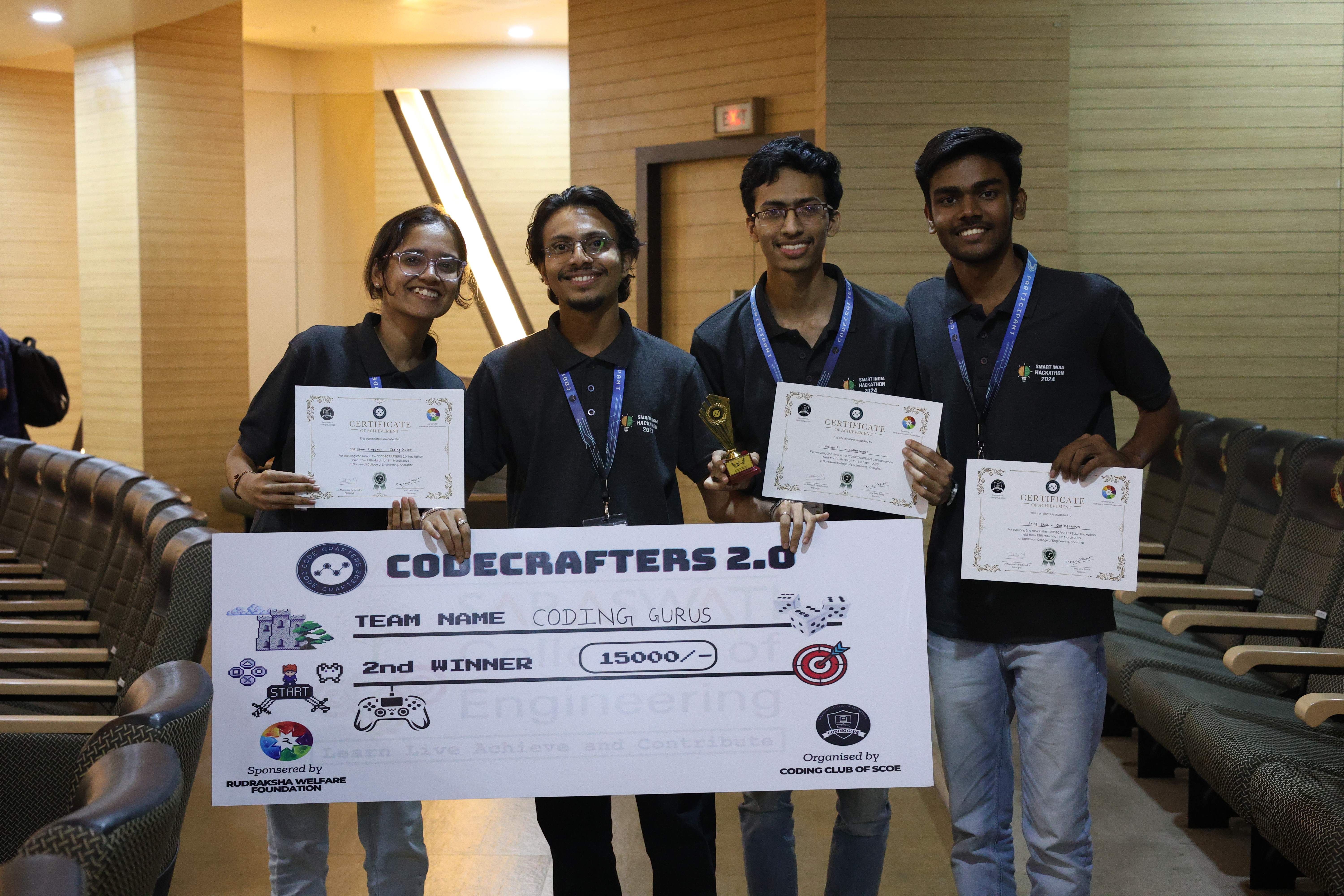 Team Coding Gurus secured 3rd place at Rotacodefest Hackathon by Ghatkopar West Rotary Club. Recognized for strong presentation energy and collaborative effort.